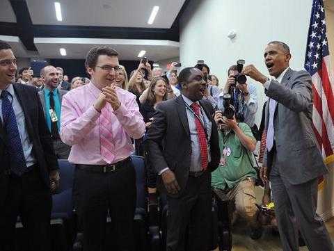 | Tổng thống Obama xem tuyển Mỹ thi đấu ở World Cup cùng các nhân viên Nhà Trắng. |