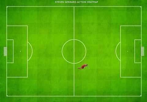 | Bản đồ hoạt động của Gerrard trên sân Anfield trong trận đấu tối qua. Nhìn vào đây ta có thể sự hiệu quả của tiền vệ đội tuyển Anh. |