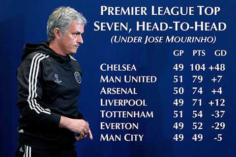 | Mourinho luôn đối đầu cực tốt với các đội bóng mạnh |
