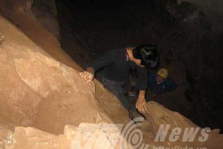 Chúng tôi nai nịt gọn gàng. Đèn pin mỗi người hai chiếc. Quang vác theo một cây gỗ dài tới 7m. Theo Quang, đường vào hang nhiều đoạn dốc đứng, nên phải cắm cây gỗ để có thứ mà bám vào tụt xuống.