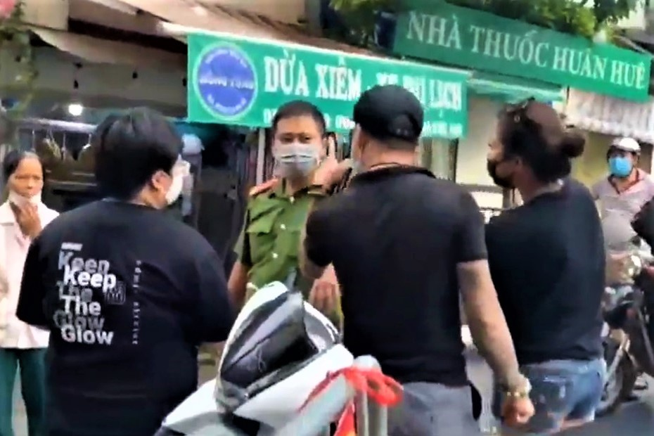 Chiều 28/7, cặp vợ chồng "hổ báo" tranh cãi với cán bộ công an trực chốt ở chợ Yên Phụ (Tây Hồ, Hà Nội). Họ rút điện thoại, dí vào mặt cảnh sát mà phát trực tiếp (live-stream) trên Facebook.