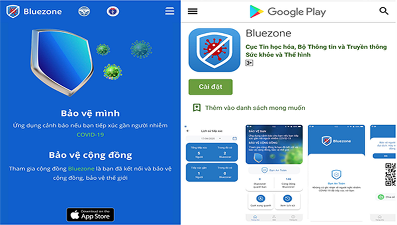 Ứng dụng Bluezone trên phần mềm IOS và Android. (Ảnh chụp màn hình)