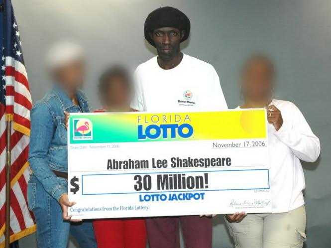 Giải thưởng 17 triệu USD ở Florida năm 2006 biến người gác cổng Abraham Shakespeare 47 tuổi thành triệu phú chỉ trong một đêm. Shakespeare lên kế hoạch chi tiêu và cho đi trong hai năm sau khi thắng giải, ông chia sẻ: “Tôi chỉ muốn trở lại như trước đây, đi dạo trên đường mà chẳng sợ ai xin tiền".