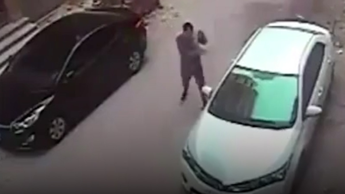 Người đàn ông dùng một viên gạch với ý định ném vỡ kính ô tô để trộm đồ, nhưng khi vừa ném vào cửa kính, bất ngờ viên gạch văng ngược trở lại, trúng mặt kẻ này.