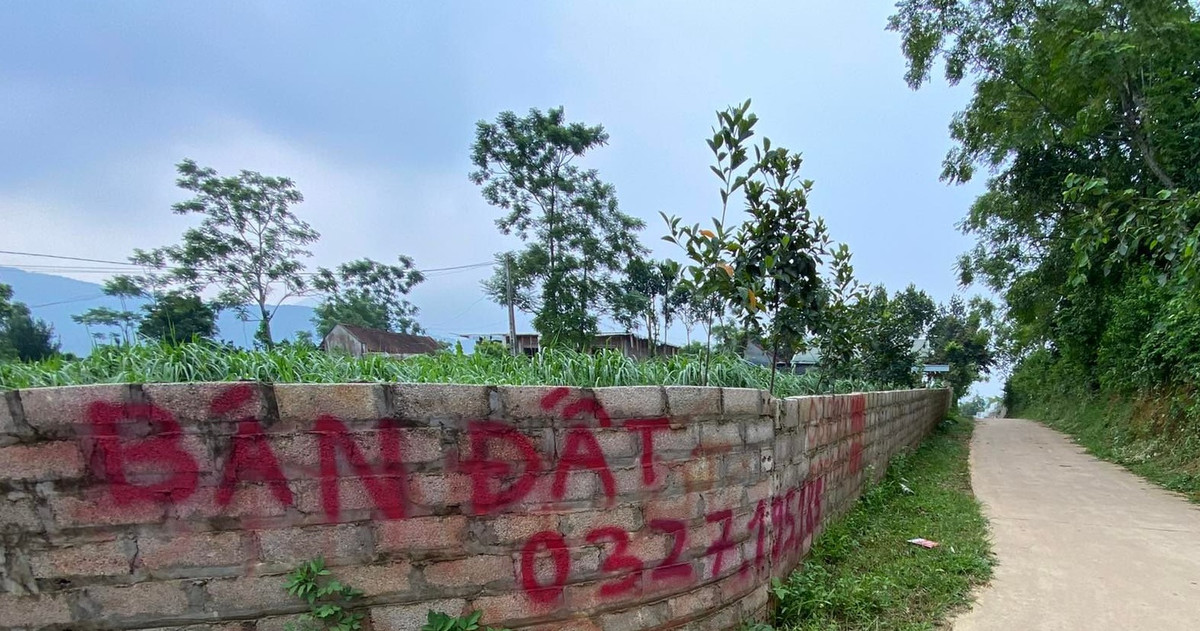 Dọc đường làng ngõ xóm của "thủ phủ sốt đất" Yên Bài, nhừng dòng chữ bán đất nguệch ngoạc, những biển bán bất động sản xuất hiện dày đặc. (Ảnh: Đức Thiện)