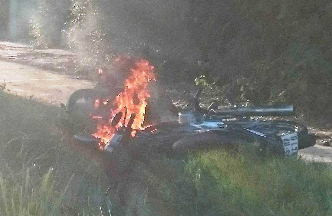 Trong lúc lời qua tiếng lại, chị T. cũng vào nhà lấy một chiếc xe máy khác của gia đình ra đốt cháy ngùn ngụt.