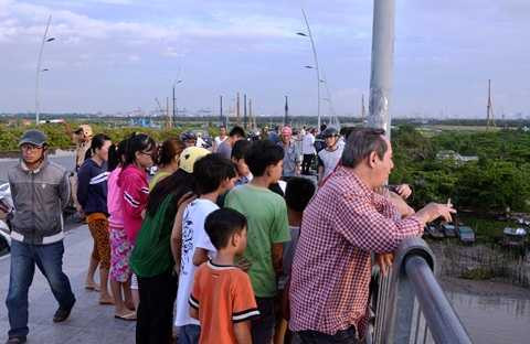 Người dân hiếu kỳ đứng xem kín trên cầu Thủ Thiêm