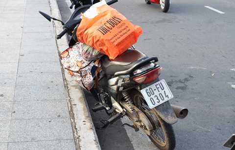 Chiếc xe máy chở đồ đôi nam nữ để lại trên cầu