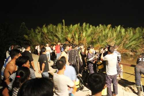 Sự việc trên thu hút hàng trăm người dân hiếu kỳ, đứng 2 bên cầu xem lực lượng chức năng lặn tìm nạn nhân.