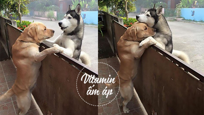 Cận cảnh hai người bạn thân thiết gặp nhau.