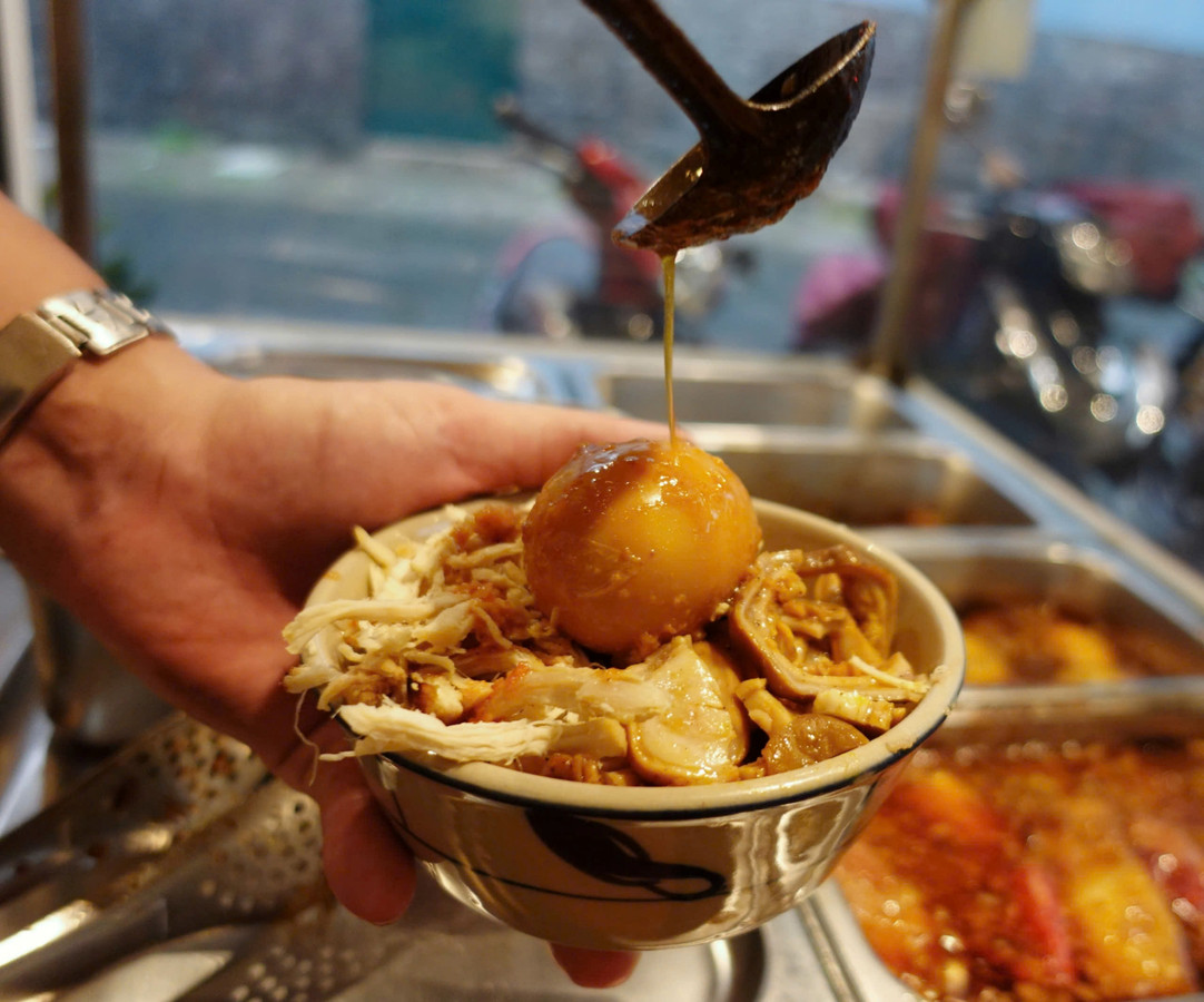 Bí quyết tạo nên Xôi Bát là sự hài hòa hương vị. Công thức thịt kho tàu từ thời bà nội truyền cho mẹ anh Thịnh, kho hoàn toàn với nước dừa. Thịt kho mềm, có màu caramel và vị thiên ngọt theo kiểu miền Tây.
