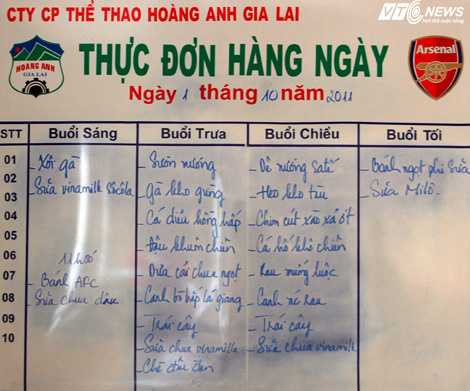 | Thực đơn một ngày ở học viện HAGL-Arsenal JMG (Ảnh: Nhạc Dương) |