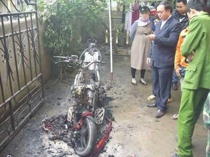 | Cảnh sát có mặt tại hiện trường, nơi chiếc xe máy Air Blade mang BKS 73E1- 03.988 bị cháy. |