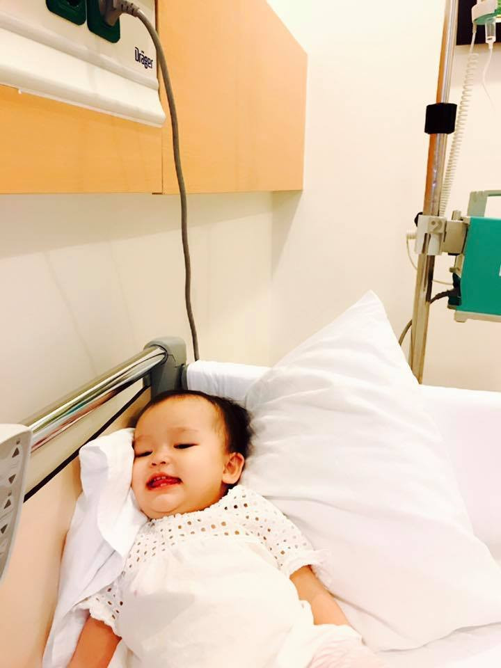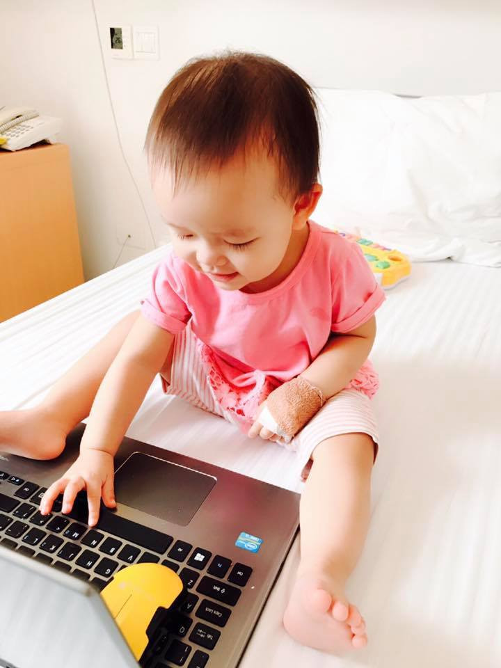 Hình ảnh bé Đu Đủ đang nằm viện vì bệnh tay chân miệng
