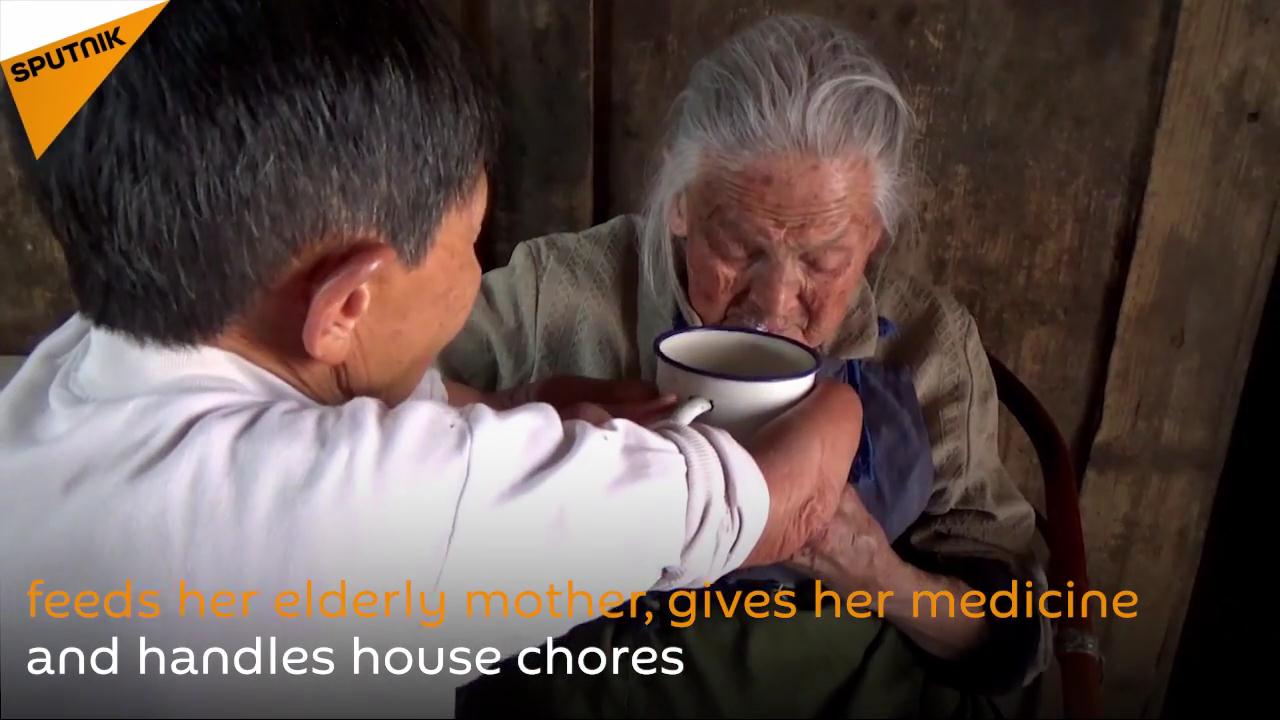 Ở tuổi 12, bà sớm mồ côi cha và phải phụ mẹ chăm sóc 2 em gái. Giờ đây, khi các em gái đều sống ở xa, người phụ nữ 75 tuổi tật nguyền lại một tay chăm sóc người mẹ già nay đã 100 tuổi.