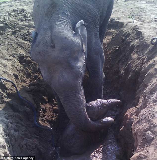 Sự việc xảy ra ở quận Chatra, bang Jharkhand, Ấn Độ. Voi con không may rơi vào một đầm lầy, và bị lún sâu. Voi mẹ đã cố gắng cứu con bằng vòi của mình suốt 11 giờ đồng hồ.