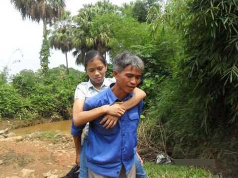 Cứ mỗi buổi sáng sớm, dù ngày mưa hay ngày nắng, anh Nông Văn Vinh (1974) lại cõng con gái là Nông Hoài Hương (1999) đến trường.