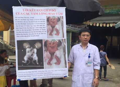 Hình ảnh đẹp về ngành y tê: Bác sỹ Chung và đồng nghiệp quyên tiền cho 2 bé dính nhau từ ngực đến bụng