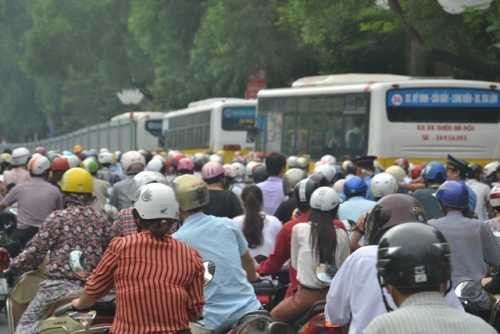 | Chen lấn trên tuyến đường vừa thực hiện lệnh cấm ô tô (Ảnh: Minh Chiến) |