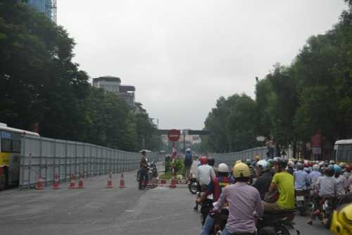 | Đặc biệt tại khu vực dựng rào chắn, thu hẹp lòng đường (Ảnh: Minh Chiến) |