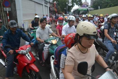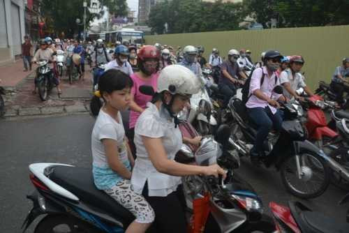 | Xe máy rẽ ngang, rẽ dọc tìm đường thoát (Ảnh: Minh Chiến) |