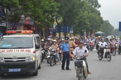 | Trước tình hình này, phòng CSGT và Sở GTVT Hà Nội thống nhất, tùy từng thời điểm sẽ thực hiện lệnh cấm hoặc cho phép ô tô lưu thông để đảm bảo giao thông thông suốt, hạn chế tối đa tình trạng ùn tắc (Ảnh: Minh Chiến) |
