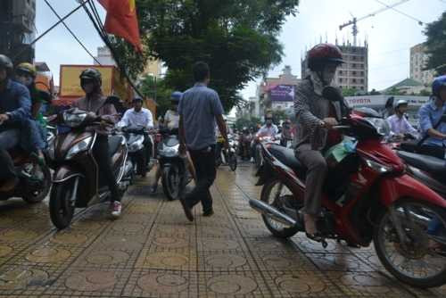 | Vỉa hè là lựa chọn tối ưu cho xe máy (Ảnh: Minh Chiến) |