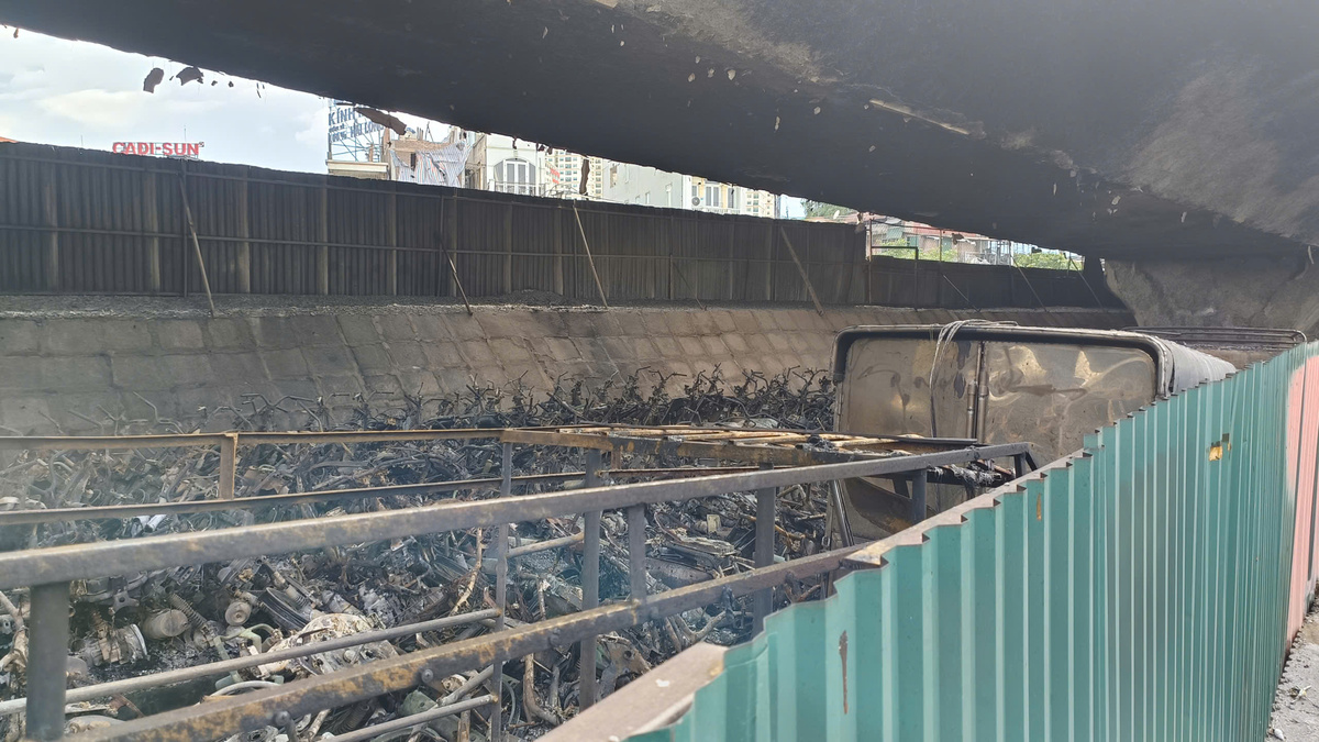 Vụ cháy thiêu rụi khoảng 500 xe máy dưới gầm cầu.