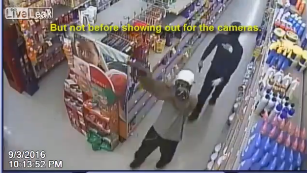 Đoạn video trích xuất từ camera giám sát của cửa hàng được cảnh sát thành phố Jacksonville (bang Arkansas, Mỹ) tung ra nhằm truy tìm 2 tên cướp có vũ trang, trong đó một tên da đen và tên còn lại da trắng.