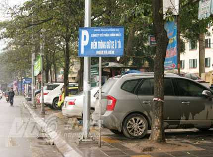 Điểm trông xe ô tô ngày và đêm trên đường Nguyễn Chí Thanh do UBND quận Đống Đa cấp phép vẫn hoạt động bình thường.