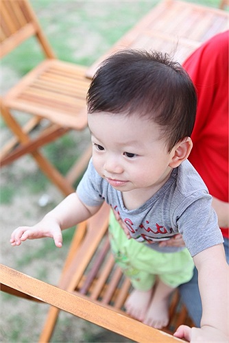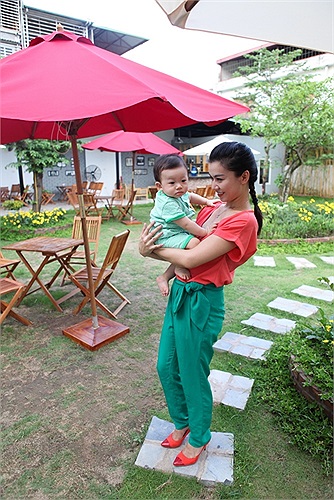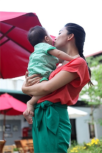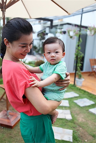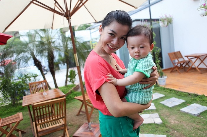 Kết hôn xong, cô sinh con trai đầu lòng và giờ bé trai đã được 10 tháng tuổi, rất giống bố, kháu khỉnh, tinh nghịch.