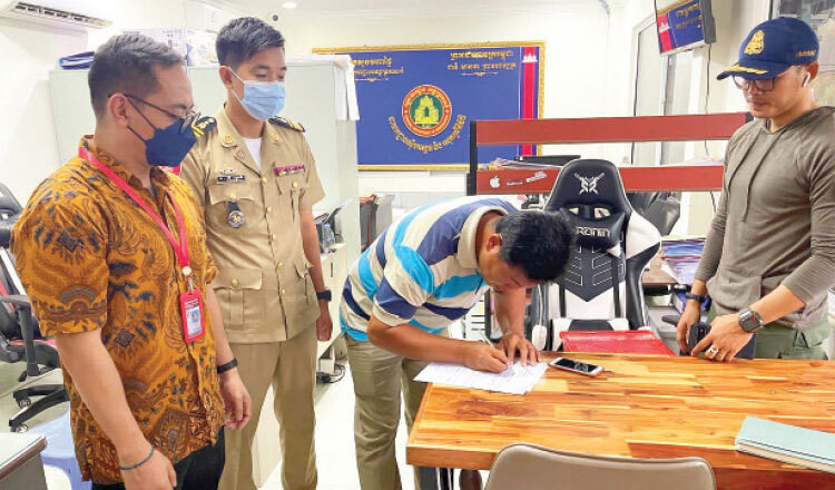 Một người đàn ông nộp đơn trình báo cảnh sát ở thành phố Bavet của tỉnh Svay Rieng, Campuchia sau khi anh ta được giải cứu vào tháng 6. (Ảnh: Đại sứ quán Indonesia/Khmer Times).
