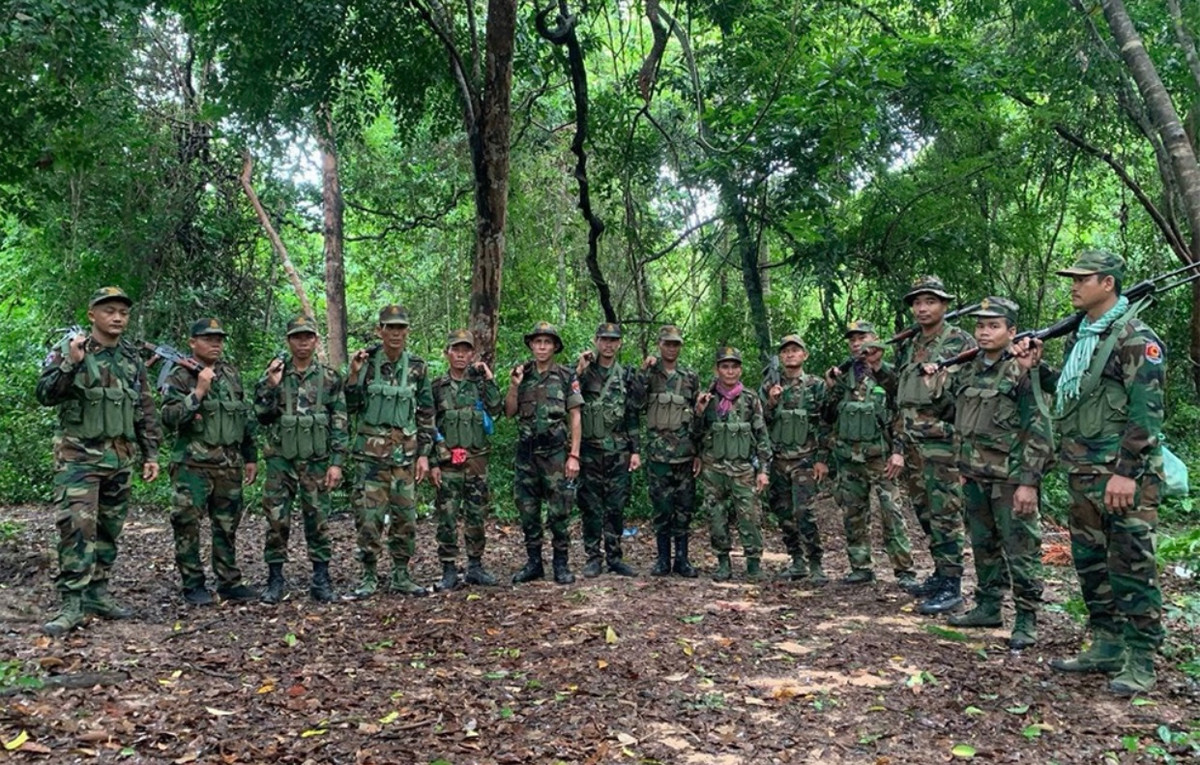 Thành viên của Quân đội Hoàng gia Campuchia (RCA) tuần tra khu rừng rậm rạp ở khu vực biên giới.