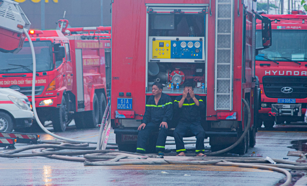 Sau hơn 15 giờ đồng hồ làm nhiệm vụ, nhiều chiến sĩ cảnh sát PCCC và cứu nạn cứu hộ Công an tỉnh Bình Dương cùng các đơn vị liên quan đã kiệt sức.