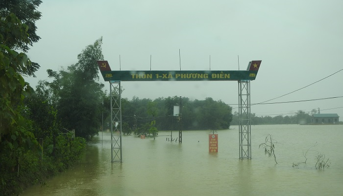 Xã Phương Điền (Hương Khê) bị ngập trong nước lũ.
