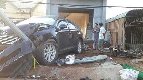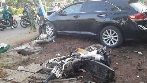 (VTC News) - Chiếc xe ô tô phóng đi với tốc độ nhanh, đâm liên tiếp vào 4 xe máy rồi lao thẳng vào cột điện mới chịu dừng.