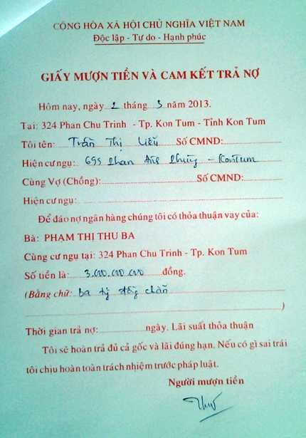 Các giấy vay nợ để làm đáo hạn của bà phó phòng tín dụng ngân hàng nông nghiệp và phát triển nông thôn tỉnh Kon Tum