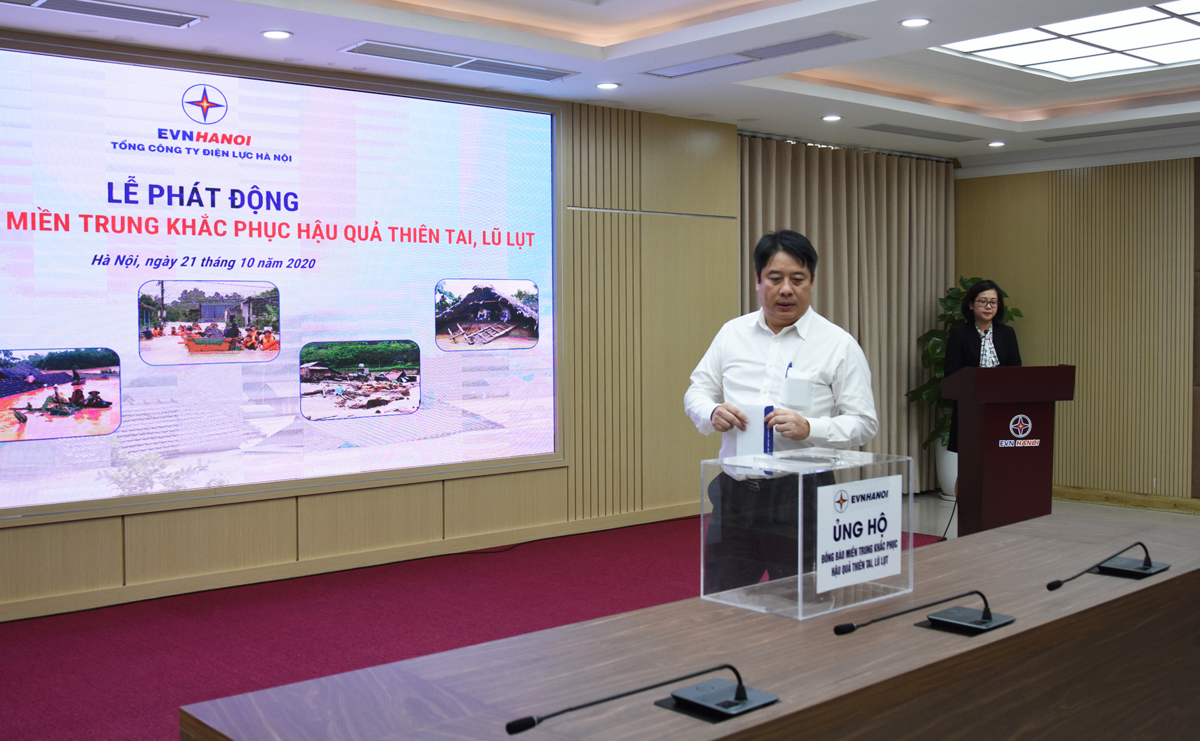 Phát động chương trình, đồng chí Nguyễn Anh Tuấn - Thành ủy viên, Bí thư Đảng ủy, Chủ tịch Hội đồng thành viên EVNHANOI cho biết những ngày qua, các đợt mưa lũ lớn liên tục, kéo dài đã ảnh hưởng nghiêm trọng, gây thiệt hại rất nặng nề đến tính mạng, tài sản và đời sống của người dân các tỉnh miền Trung ruột thịt. Đồng chí kêu gọi toàn thể các đảng viên, cán bộ, công nhân viên, người lao động EVNHANOI chung tay cùng nhân dân cả nước tiếp tục quyên góp, chia sẻ những khó khăn, mất mát do thiên tai gây ra tại miền Trung.