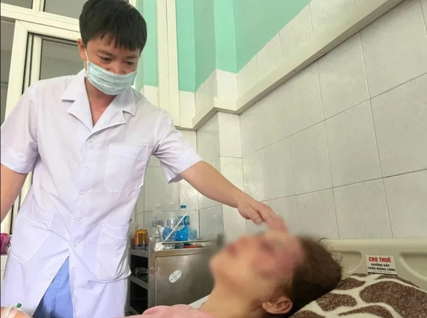 Nạn nhân sau đó được người thân chở đến cơ sở y tế cấp cứu trong tình trạng dập xương mũi, gãy xương hàm, chảy máu mắt do rách. Ngoài ra, trên cơ thể nạn nhân còn có nhiều vết thâm tím, bầm dập.