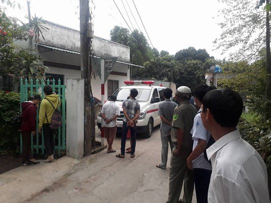 Xe cứu thương chuẩn bị vận chuyển thi thể rời khỏi nhà nạn nhân, phục vụ công tác khám nghiệm