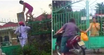 Các cán bộ, nhân viên tuồn hàng từ thiện ra bên ngoài. (Ảnh cắt từ clip)