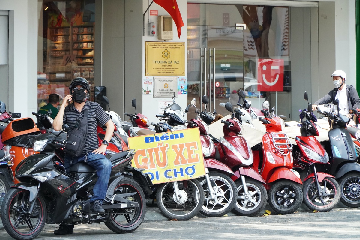 Ghi nhận của PV VTC News, tại đường Trần Hưng Đạo (Quận 1) hàng loạt xe máy của những hộ kinh doanh được xếp gọn gàng trên vỉa hè và bên trong lề đường.