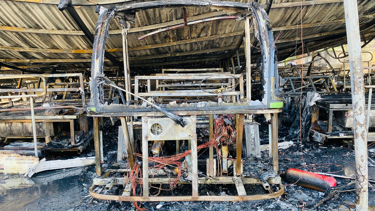 Chiếc xe điện bị cháy chỉ còn trơ phần khung.