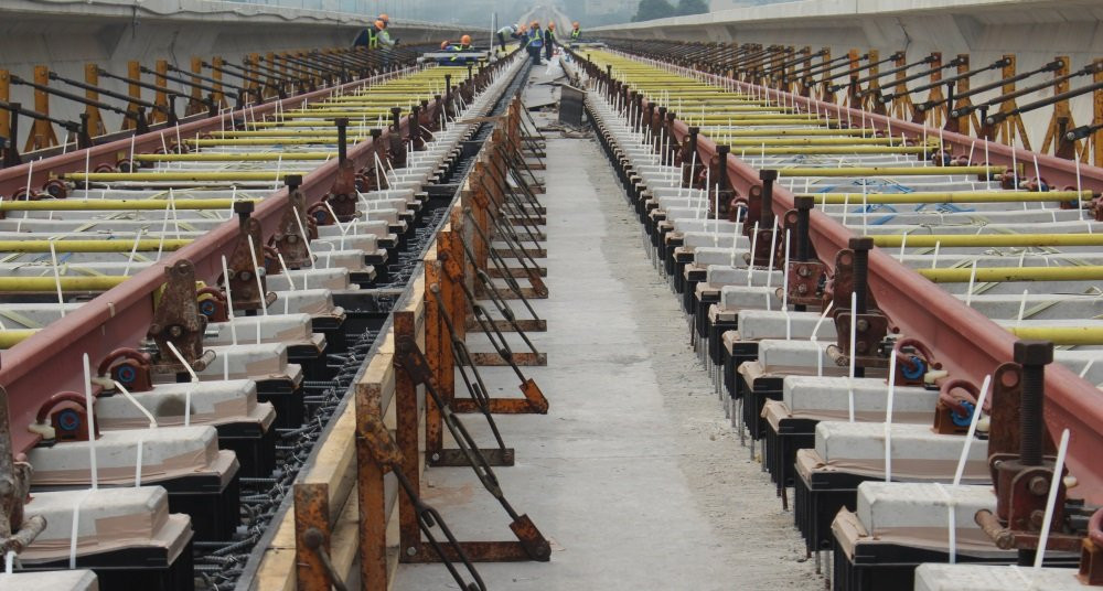 Sau khi lắp ráp xong phần đường ray, nhà thầu sẽ đổ bê tông phía dưới, cố định đường ray một lần nữa để không bị xê dịch.