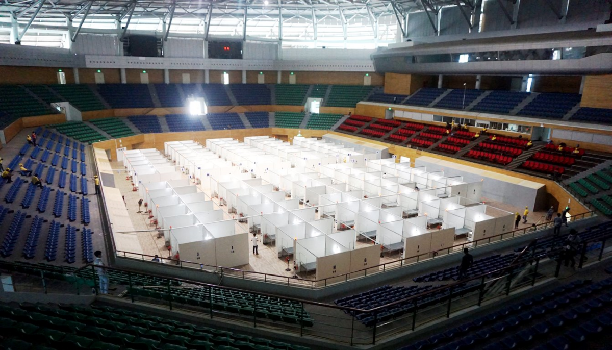Để đáp ứng yêu cầu trước mắt, Bệnh viện dã chiến đã được lắp đặt 284 giường bệnh tại sàn thi đấu tầng 1. Trong trường hợp dịch bùng phát mạnh, bệnh viện sẽ được tăng cường số buồng, giường với quy mô tối đa có thể đáp ứng 700-1.000 giường bệnh.