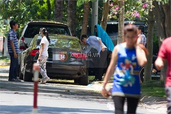 Công Vinh tự lái xe đến đón Thủy Tiên tại một tòa nhà
