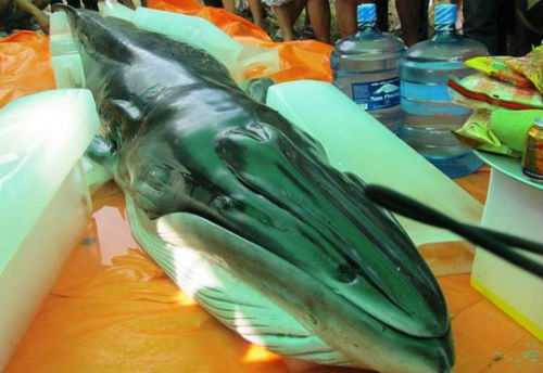 Con cá voi đã chết có chiều dài là 3,6 m, đường kính lớn nhất 50 cm, nặng khoảng 500 kg.
