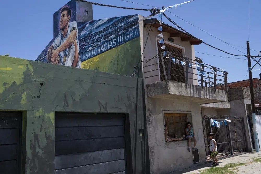 Một bức vẽ graffiti ghi: “Từ một thiên hà khác và từ khu phố của tôi”, phía xa là một bức tranh tường lớn vẽ siêu sao 35 tuổi ngước lên bầu trời. Đó là bức tường phía bên phải của ngôi nhà cũ, nơi Lionel Messi lớn lên trong những ngày thơ ấu.