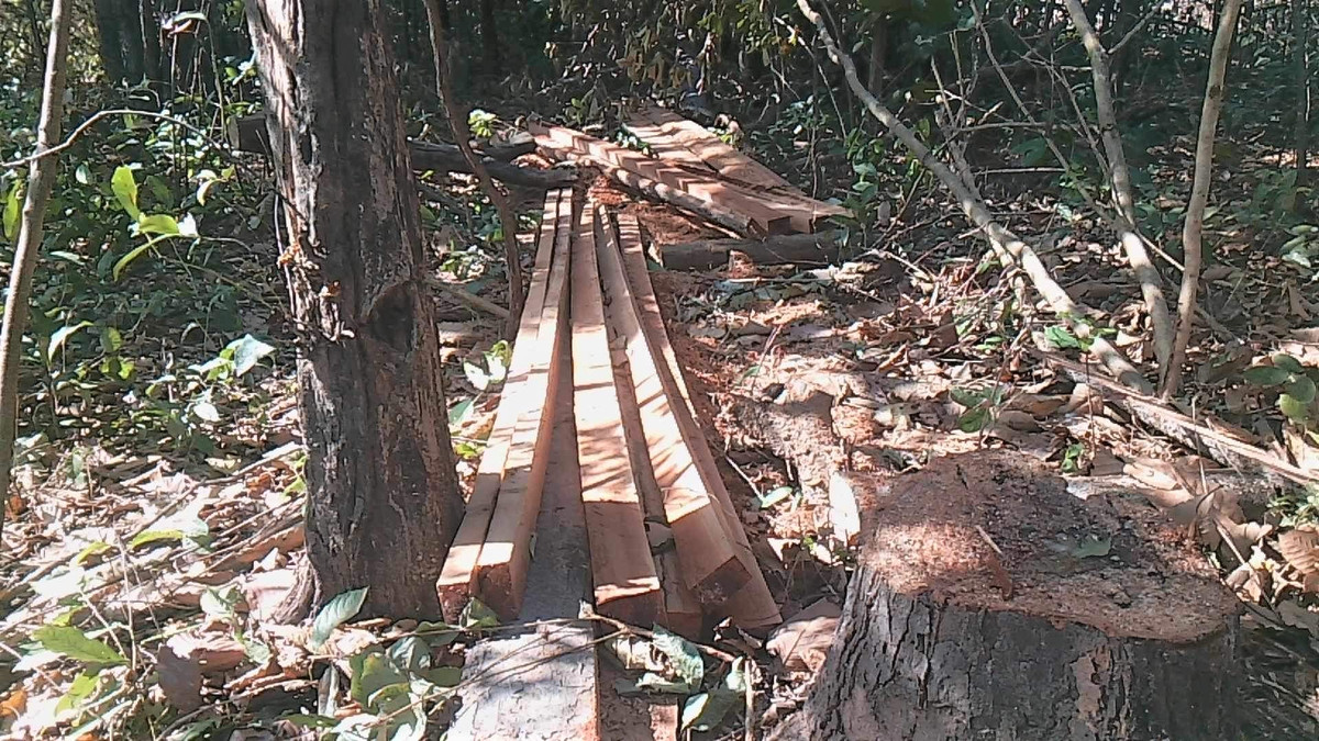 Nhiều cây gỗ đã bị xẻ nhưng chưa kịp vận chuyển đi khỏi hiện trường,
