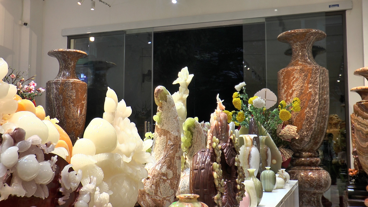 Cặp lục bình được nghệ nhân Tô Chinh chế tác từ khối đá Onyx nặng 15 tấn được nhập khẩu từ Mexico, chiều cao 3m, chu vi gần 1m đang trưng bày tại Bắc Ninh.